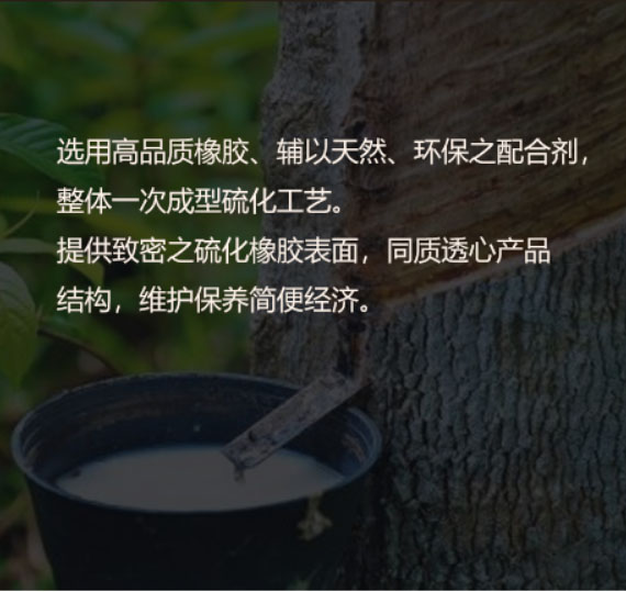 Choose high-quality rubber, supplemented by natural, environmentally friendly compounding agents, and the whole one-time molding vulcanization process. Provide a dense vulcanized rubber surface, homogenous and transparent product structure, easy and economical maintenance.